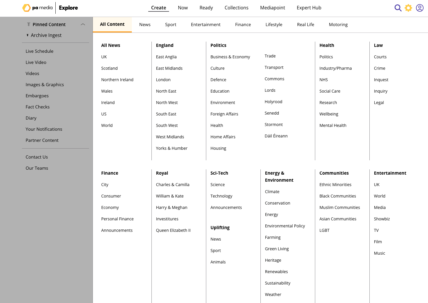 Articles in each service carry a range of metadata to identify the subject matter and, where appropriate, type of story, geographical territory, plus additional categories for sport content.